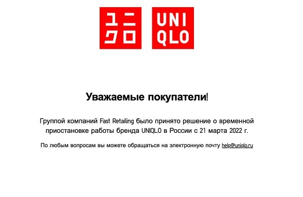 Компания Fast Retailing Co, которая управляет сетью магазинов Uniqlo, в марте 2022 года заявила о приостановке деятельности в России.